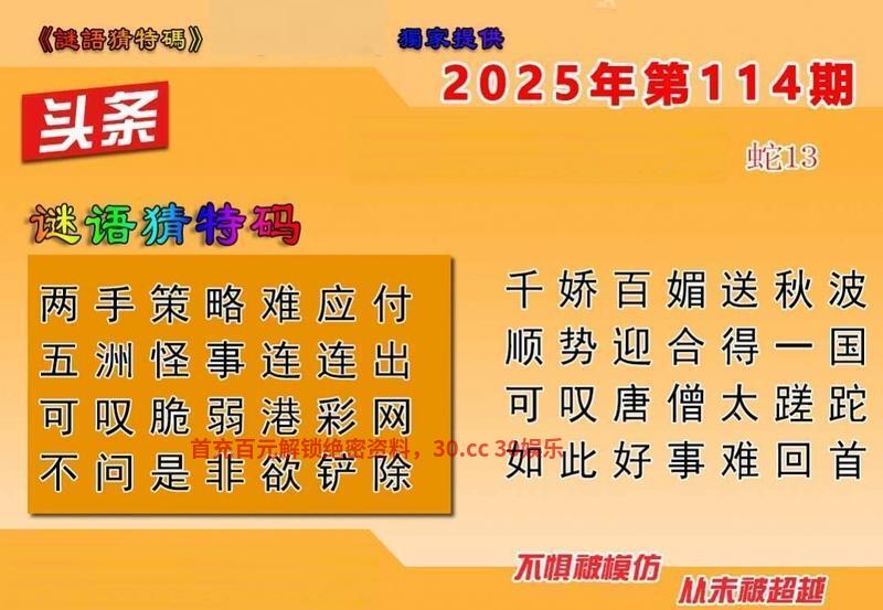 117期六合头条【解迷语猜特码】